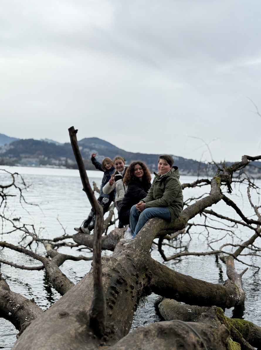 Die Reise im Zug war sehr schön, ich hatte Snacks und coole Freundinnen dabei. Als wir dann in Luzern angekommen sind, liefen wir in ein SCHOKOLADEN-Museum. Als wir beim Verkehrshaus waren, hatten wir noch 15 Minuten Zeit. Die Lehrpersonen sagten: „Das schönste Gruppenfoto gewinnt“ – meine Gruppe hat tatsächlich gewonnen!